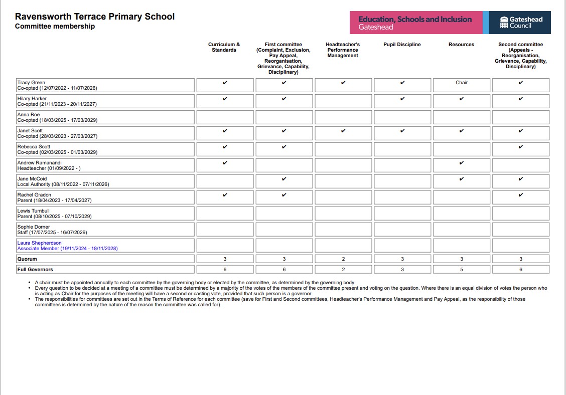 Please find below details of how our Governing body is structured, including the names, categories, responsibilities and terms of appointment for each Governor.
